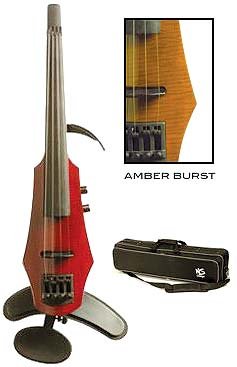 The NS Design WAV-4 Electric 4-String 4/4 Violin with Amber Burst Finish provides an affordable option for the serious professional and student player. At the heart of every NS bowed electric instrument is the Polar pickup system. Sensor and bridge geometry are integrated to translate every nuance to the amplifier and speaker system. The Polar pickup has the unique ability to analyze the direction of string vibration to enhance the bowed response and to facilitate bow technique. The unusually powerful piezo crystals do not require on-board power, for maintenance-free performance without the hassle of batteries. The reserve power of a well set up electric violin makes the instrument easier to play than a conventional acoustic. The WAV violins' rock maple bridge is easily adjustable for the playing style and action height you prefer, high and powerful like a traditional violin, low and fast like an electric guitar, or anywhere in between. The ebony fingerboard is graduated for each string to optimize the tone and playability of every note. The neck is smooth and fast, with traditional thumb reference points for the scroll and heel. The removable bout provides accurate position reference for players accustomed to using the traditional body shape for reference. Light weight and good balance are the essential comfort factors for any violin. The fully carved interior of the WAV Violin keeps the weight to the minimum, and the body mounted tuners bring the center of gravity back over the shoulder where it belongs. The shoulder rest is contoured and padded to provide stable support, and is fully adjustable to accommodate differences in playing styles and body types. This beautiful amber burst WAV-4 violin comes complete with a fabric covered hard foam case, padded on the inside, with room for 2 bows, shoulder rest, output cable, and extra gear.